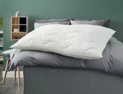 Kvalitetskudde med lätt, luftig fyllning av silikoniserad, spiralformad hålfiber, 1500 g. Överdrag i 65% polyester/35% bomull. Quiltat med hålfiber. Tvätt 60°C. 70×100 cm