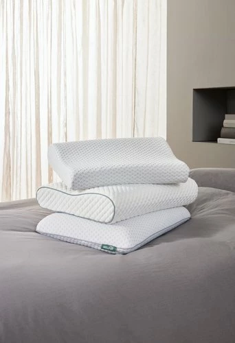 Kvalitetskudde i tryckavlastande AIR memoryskum. AIR memoryskum formar sig snabbt efter nacken och axlarna, även i en kylig sovmiljö. Mjukt överdrag i 67% polyester/33% bambuviskos, tvättbart i 40°C. 30x50x10/7 cm