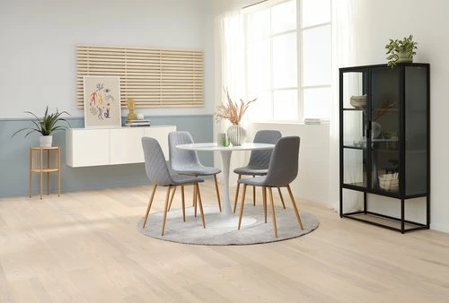| Material | Topp: MDFMDF-skivor består av mycket tunt skurna, trycklimmade träfibrer., EkfanérTräfanér består av tunna skikt av massivt trä limmat på en spånskiva eller en MDF-skiva. Det ger ett autentisk intryck av massivt, naturligt trä., Sida: Papper, Ben: Metall, Ram: Metall |