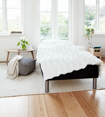 Kokäkta kvalitetstäcke med luftig, isolerande fyllning av silikoniserad, spiralformad hålfiber, 1100 g. Överdrag i 65% polyester/35% bomull. Tvätt 95°C. 150×210 cm