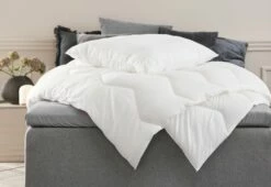 Set med fibertäcke och kudde. Luftig, isolerande fyllning av silikoniserad, spiralformad hålfiber (100% återvunnen), 990/460 g. Kuddens höjd kan justeras genom att ta bort en del av fyllningen. Mjuka överdrag i 100% polyestermikrofiber. Tvätt 60°C. Inkl. förvaringsväska. Täcke 150×200 cm. Kudde 50×60 cm.