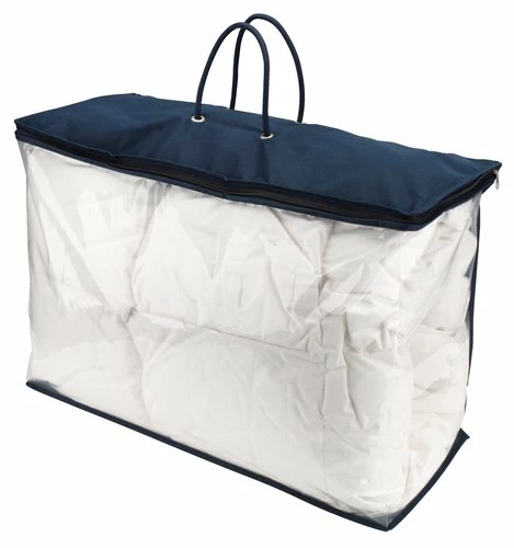 Praktisk förvaringsväska i mesh för kuddar och täcken. Mesh förbättrar luftflödet i väskan.